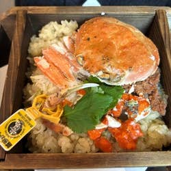 写真①ズワイガニ刺し 写真②セイコカニ蒸し飯